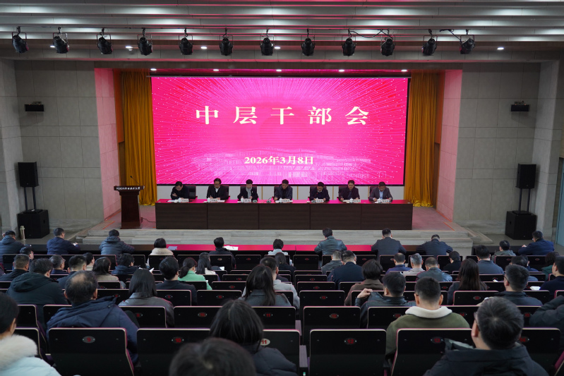 3月8日下午,学校在图书馆报告厅召开2026年春学期中层干部会,全体校领导和中层干部参加会议。会议由党委副书记梁惠主持。